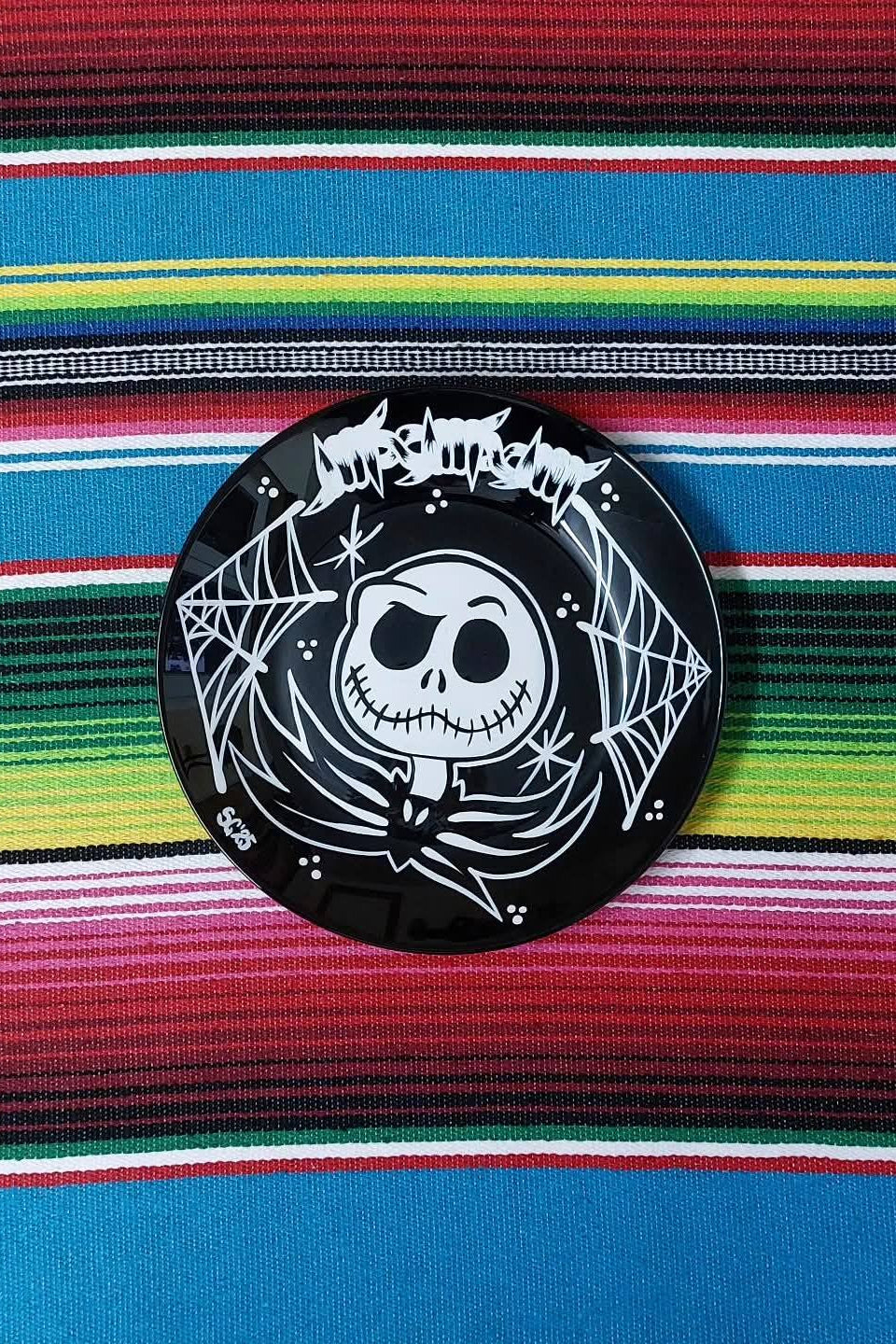 Ein schicker, schwarzer, kleiner Teller, der von mir bemalt wurde.