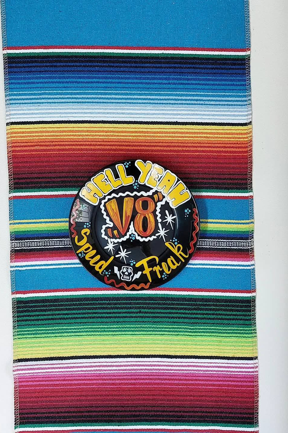 Ein schicker, schwarzer, kleiner Teller, der von mir bemalt wurde.