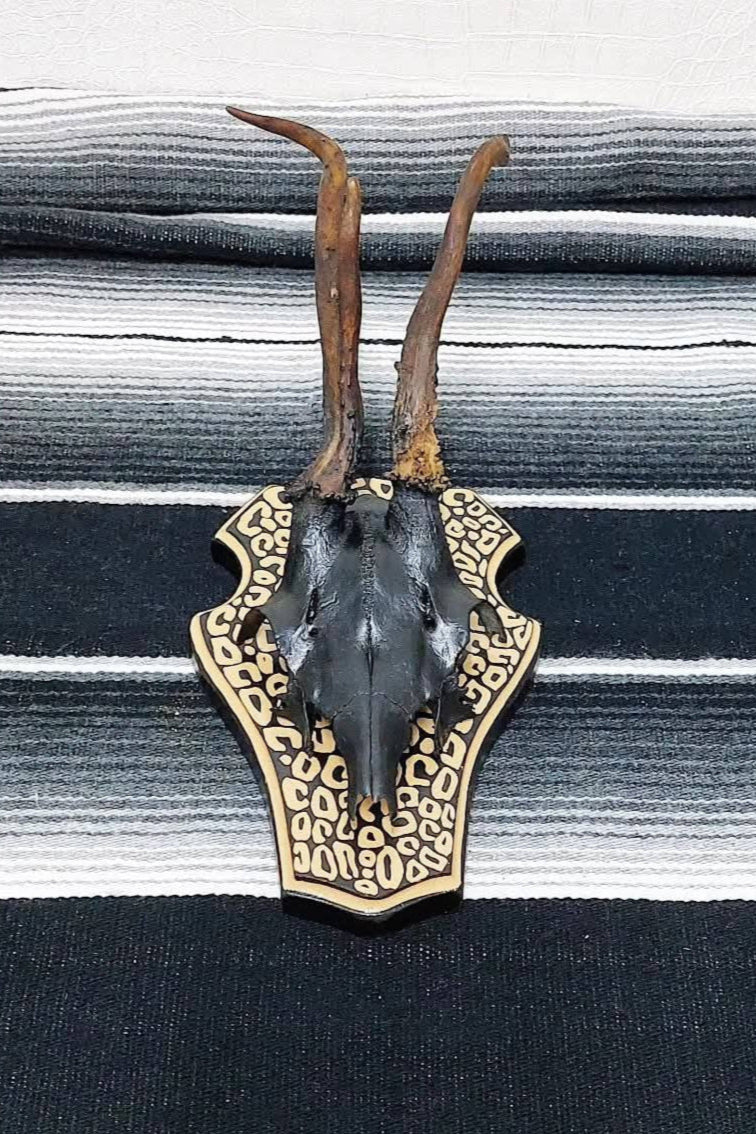Ein altes Geweih, auseinander genommen, der Schädel sowie das wundervolle Brett matt schwarz lackiert & anschließend bemalt. UNIKAT!
